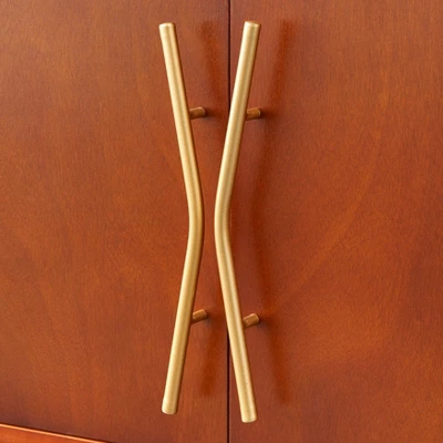 Complete your living room or dining room space with the Dennes Mid-Century Wire Accent Storage Cabinet from Buylateral. This cabinet features vintage charm from the angled metal handles to the unique patterned wire back – both in a stunning gold finish. Display decorative items, books and your favorite serving pieces on the two ultra-sturdy tempered glass shelves. The lower cabinet features an adjustable shelf making it ideal for stowing items of various size. Constructed of MDF in a walnut finish, this cabinet will add a retro contemporary feel to any room.
